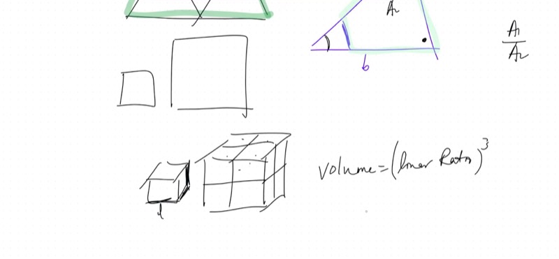 - Volume scaling: volume ratio = (linear ratio)\(^3\)